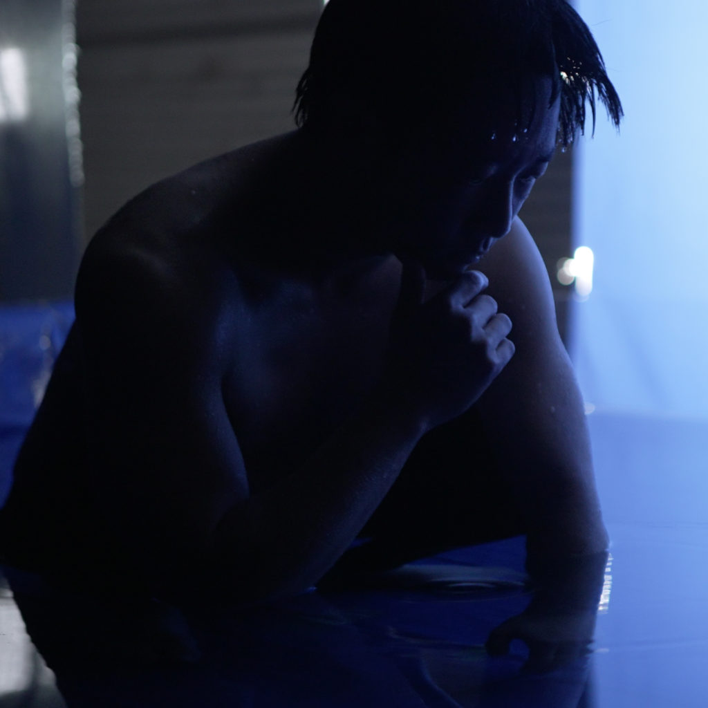 パフォーマの思考や身体性、撮影された映像を受け、詩人の中川晶一朗は 四つの章 – I. 水鏡 Ⅱ. 停留 Ⅲ. 分流 Ⅳ. 逆流 – に対応するように詩を制作した。