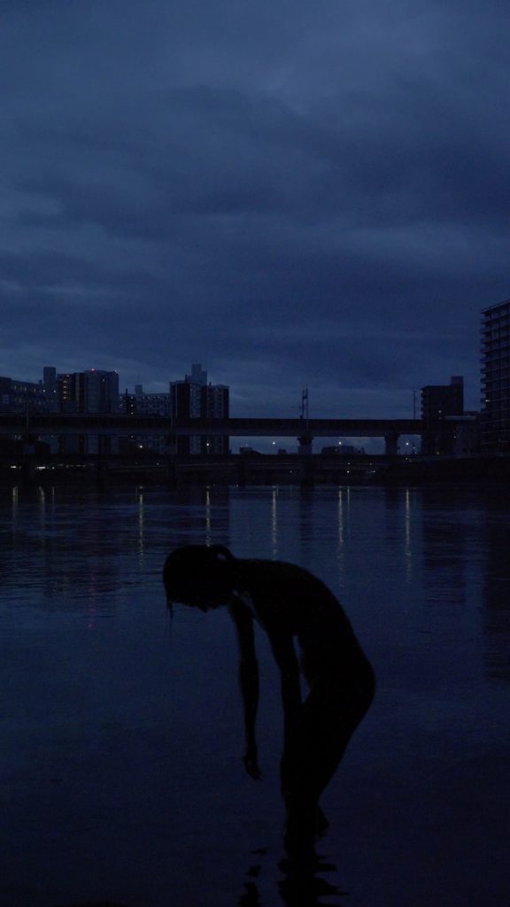 太田川の地勢がつくり出すデルタの水流の時空間を拠り所とすることで、象徴としての広島が敷く見えざる制度、思想や身振りを規定する平和都市の空間から抜け出し、現実社会の中でのわたしたち一人一人のあり方/ 夜明けを模索した。プロジェクトの最終成果として映像作品「 Obscure|オブスキュア 」を制作した。クロマキー技術で撮影されたパフォーマーの身体は、現実の風景と一体となることで、影なるもう一人の自己として川底から幻出する。